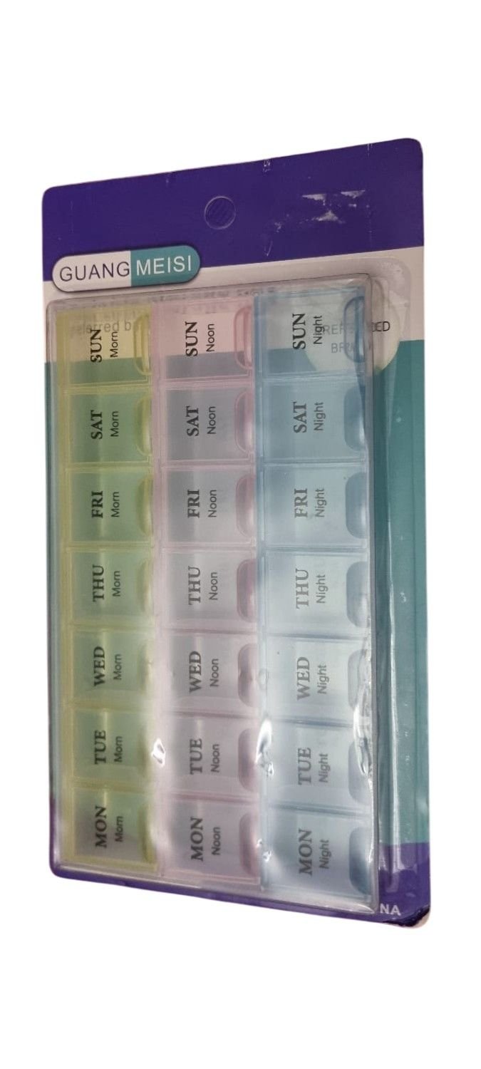 - Stay on top of your medication schedule with this 21‑compartment weekly pill organizer, divided into morning, noon, and night for each day of the week so you never miss a dose.