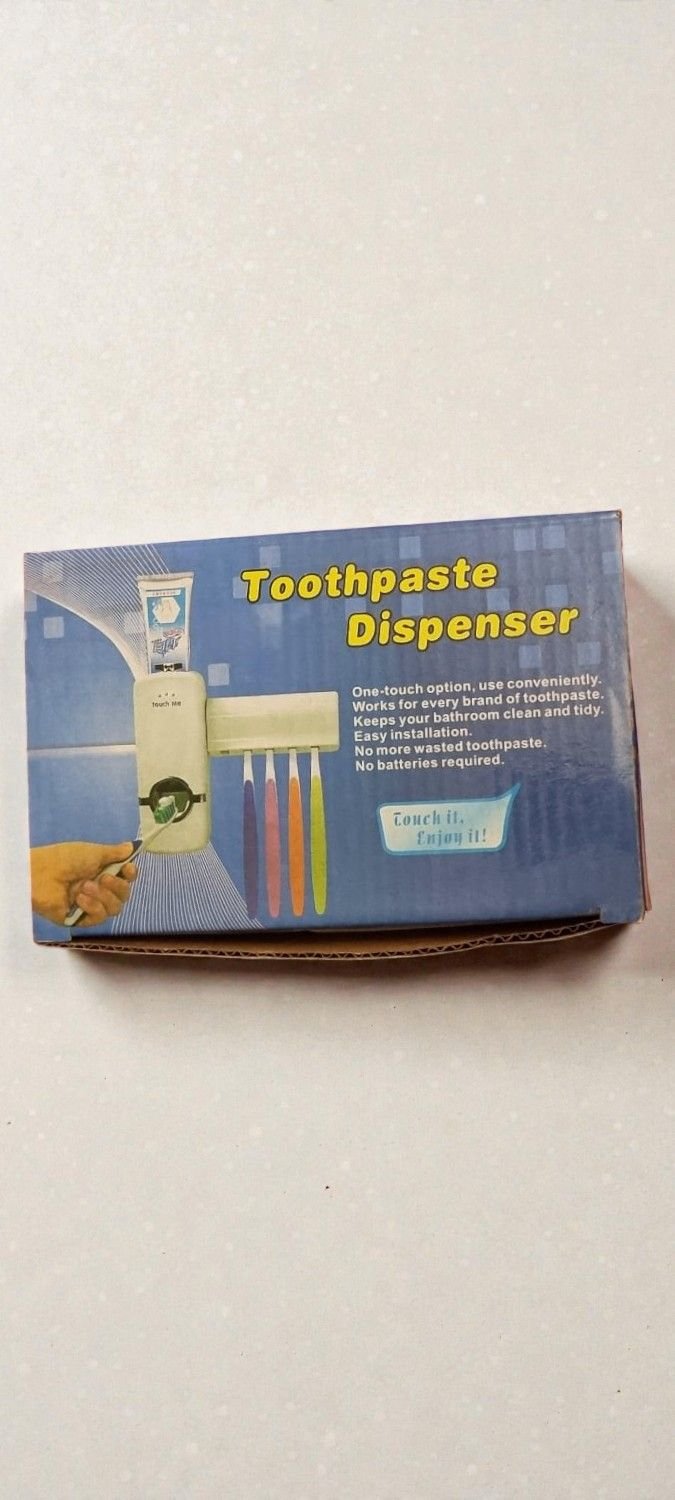 • Keep your bathroom clean and organized with this automatic toothpaste dispenser and toothbrush holder set. It mounts easily on the wall, saving space around the sink and protecting brushes from dust and splashes.