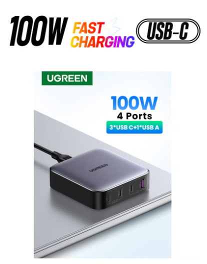 100W 4Ports 3C1A GaN Fast Charger Adapter