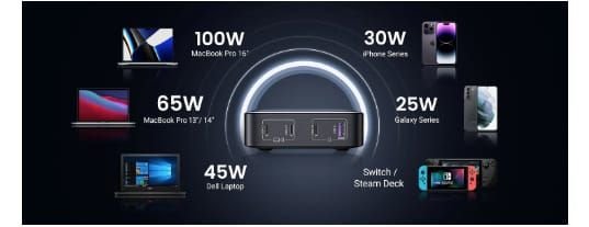 【Multi Protocol】This UGREEN Nexode 100W Charger supports multiple fast charge protocols like PD 3.0/2.0, QC 4.0/3.0/2.0, AFC, PPS etc, solves all your charging problems for phones, tablets, laptops, and more!