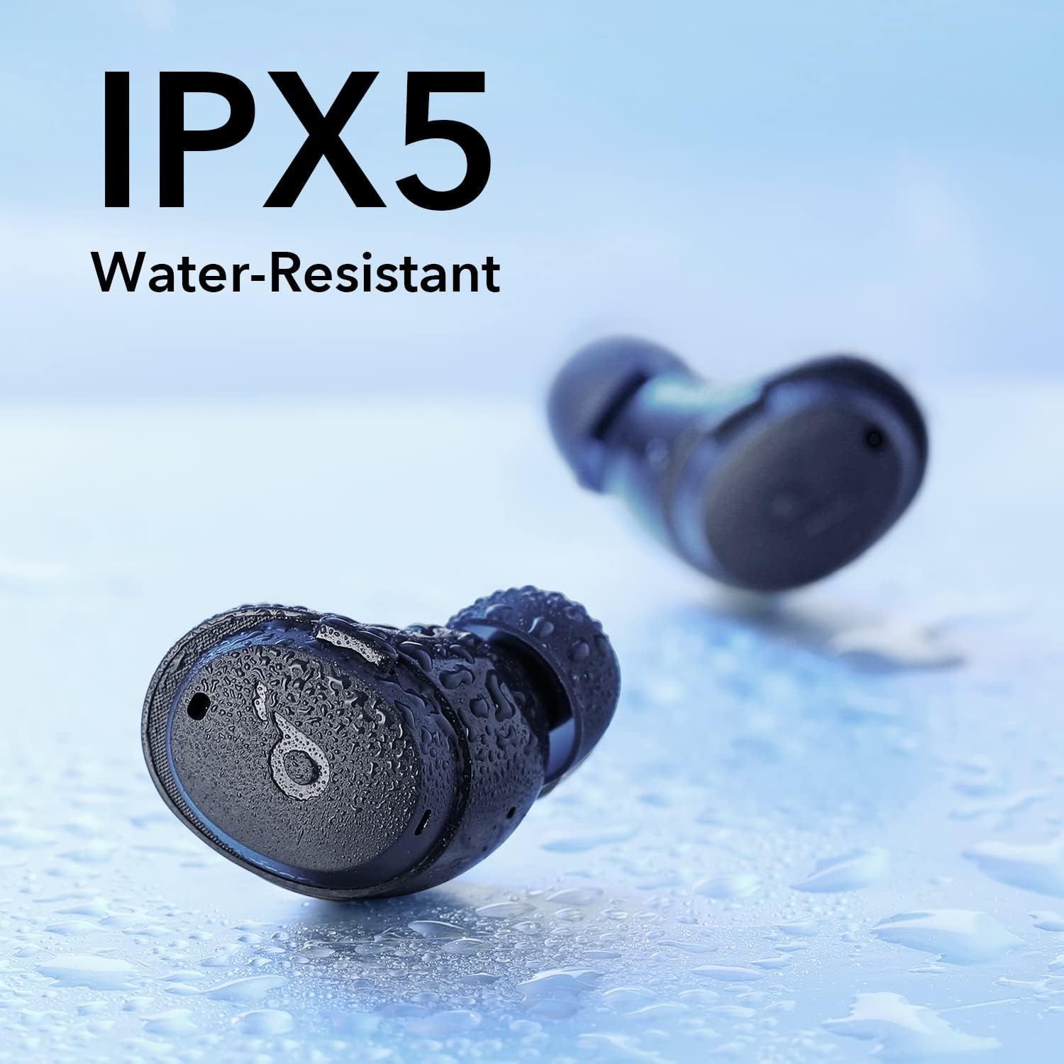 • Water resistance: IPX5 (earbuds).