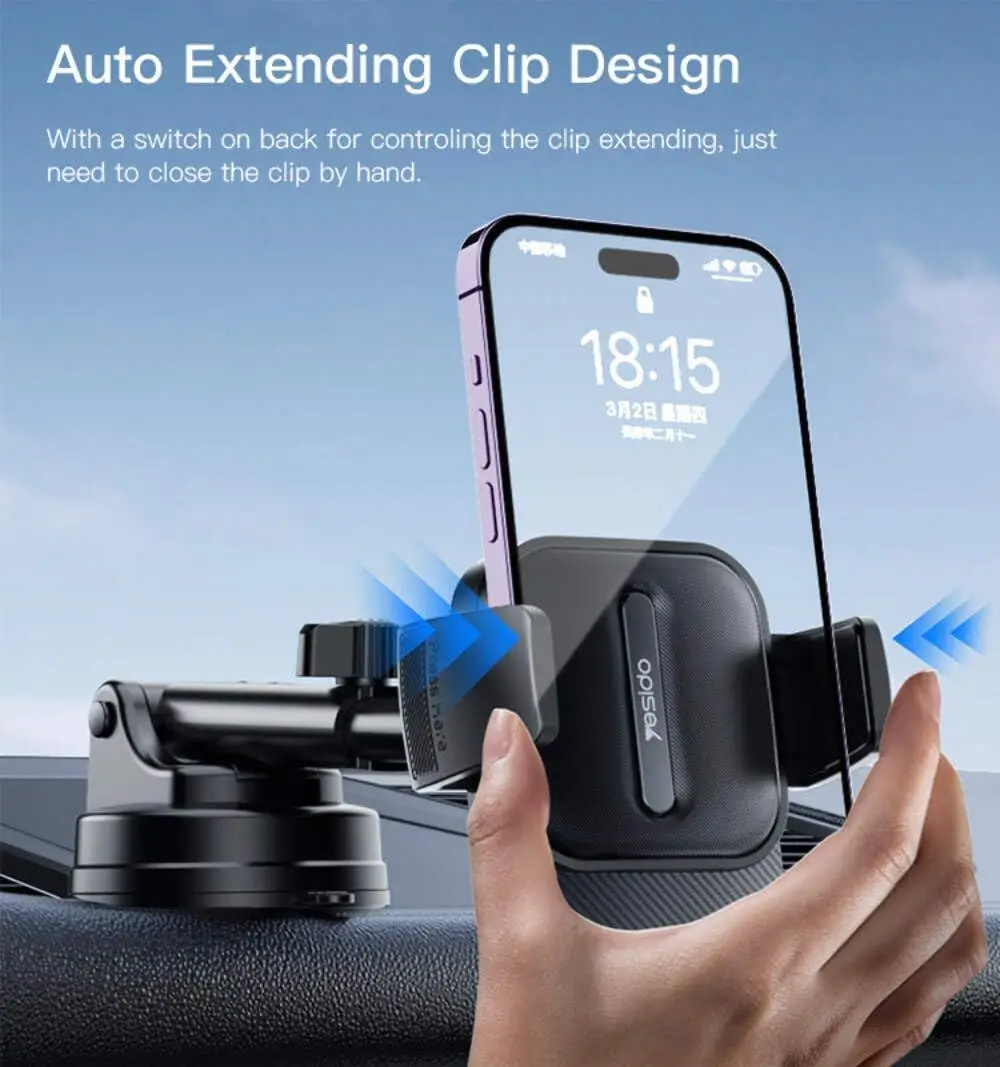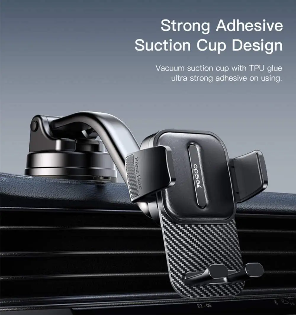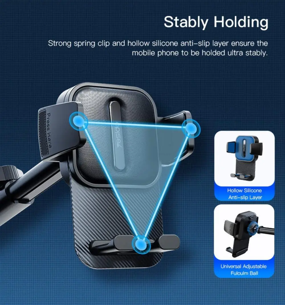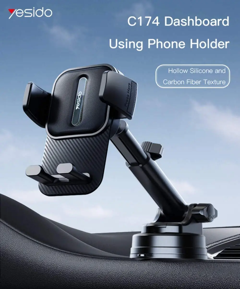 - Triangle Structure Clamp Arm: The Yesido C174 phone holder features a triangle structure clamp arm that securely locks your phone in place, providing stability even on rough roads or during sudden stops.