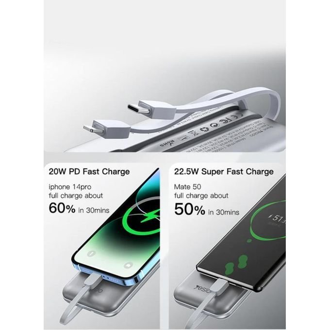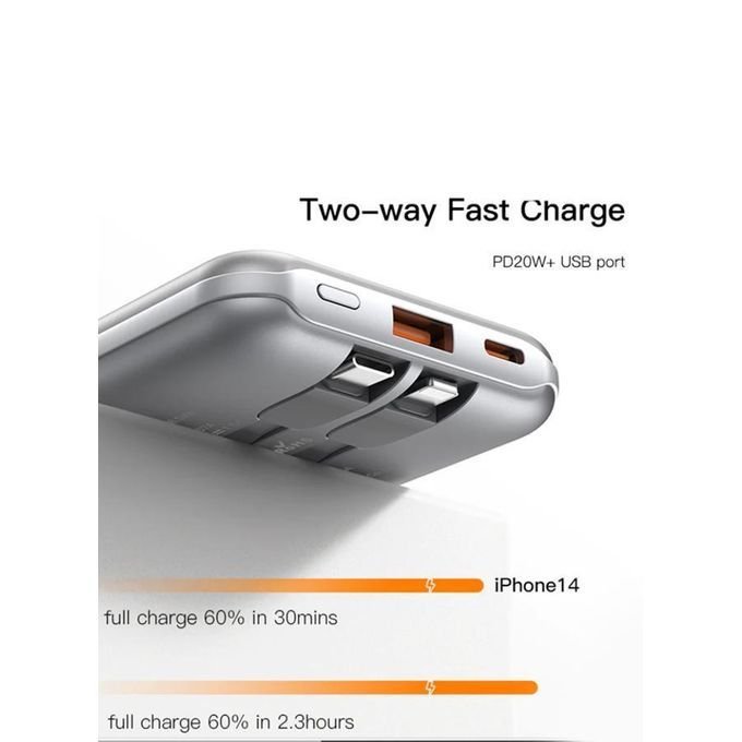 • Cables: integrated USB-C + Lightning (charge three devices at once via USB-A + USB-C + built-in cable)